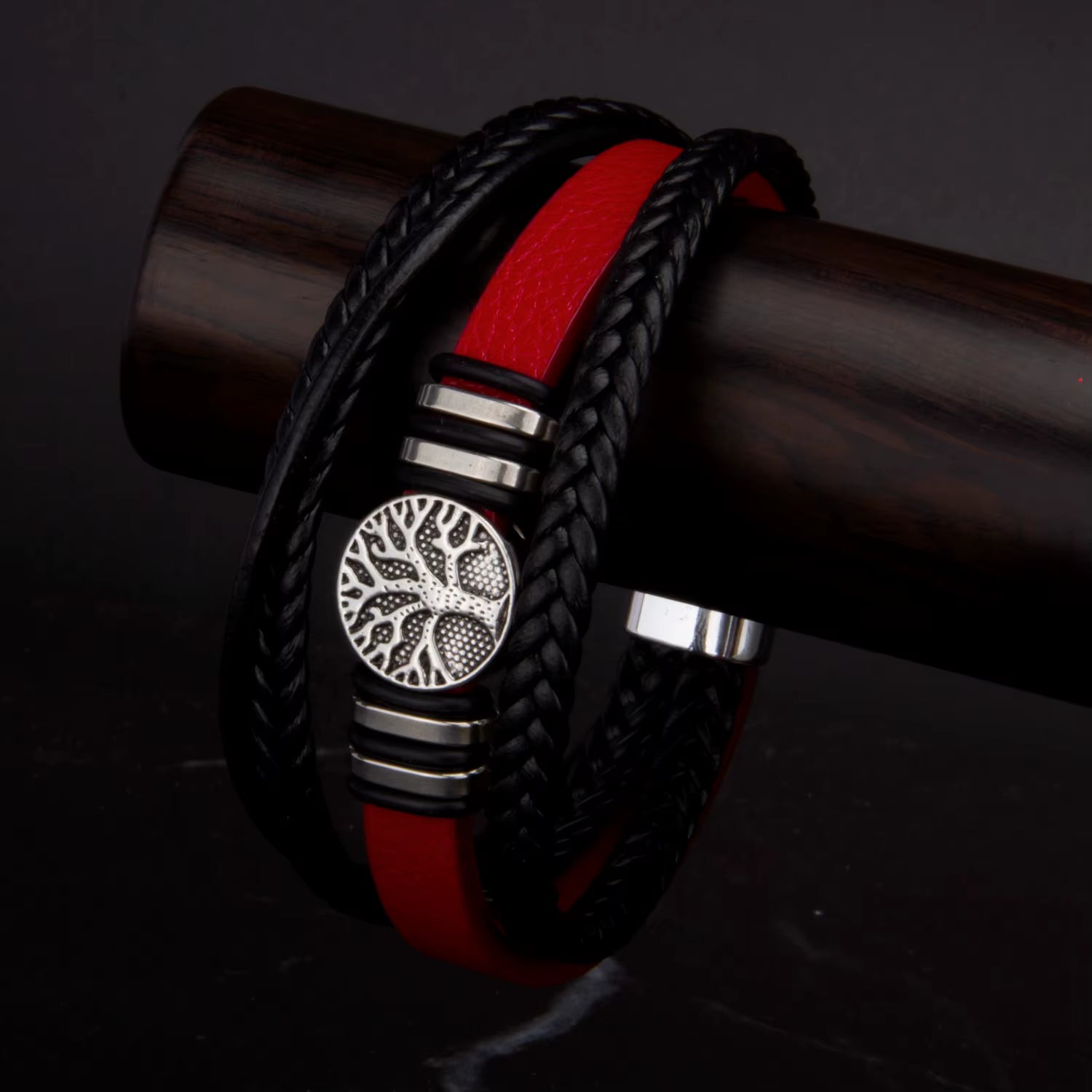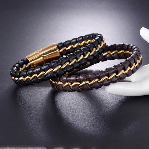 Flätat läderarmband för män i rostfritt stål